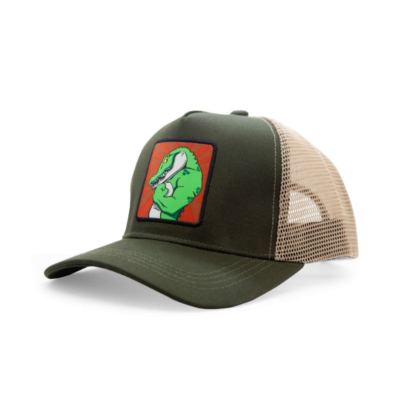 Šiltovka Hey Joe so zosilnenou prednou časťou a sieťovanou zadnou časťou. S logom značky. Zeleno-béžová farba.