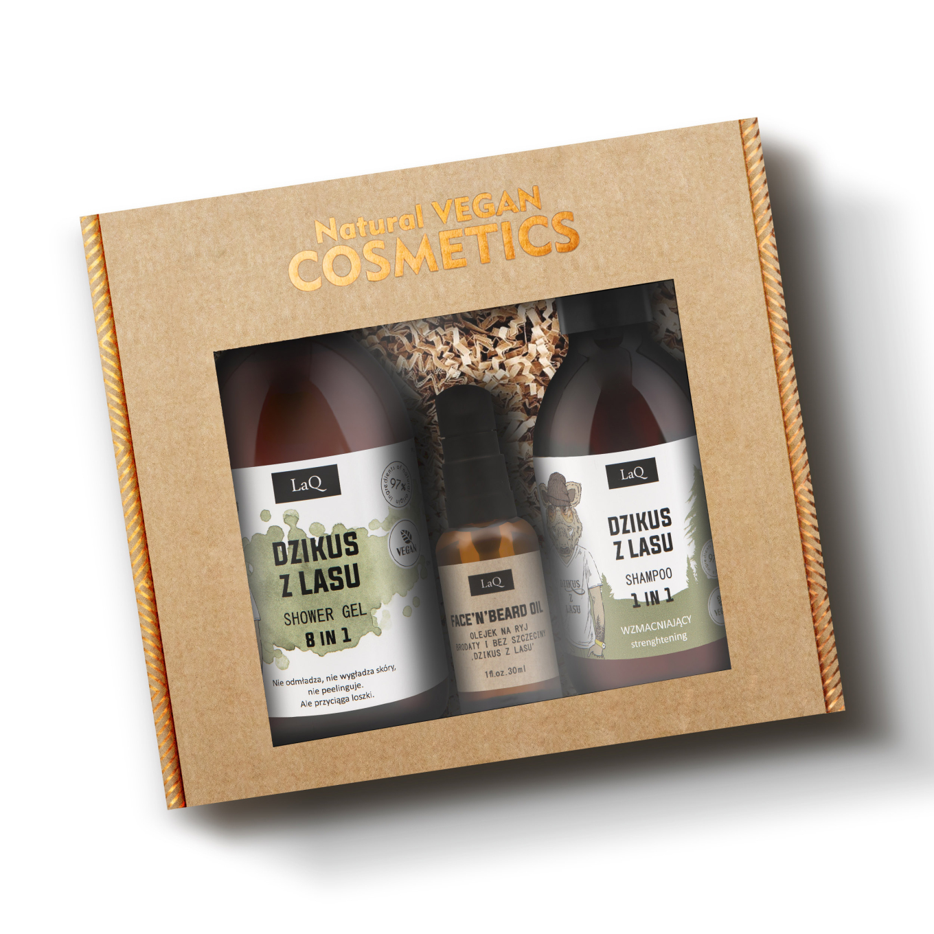 LaQ Wild Boar dárková sada pro každodenní péči o tělo, vlasy a vousy, která spojuje čištění, hydrataci a výživu s mužskou vůní inspirovanou lesní divočinou.