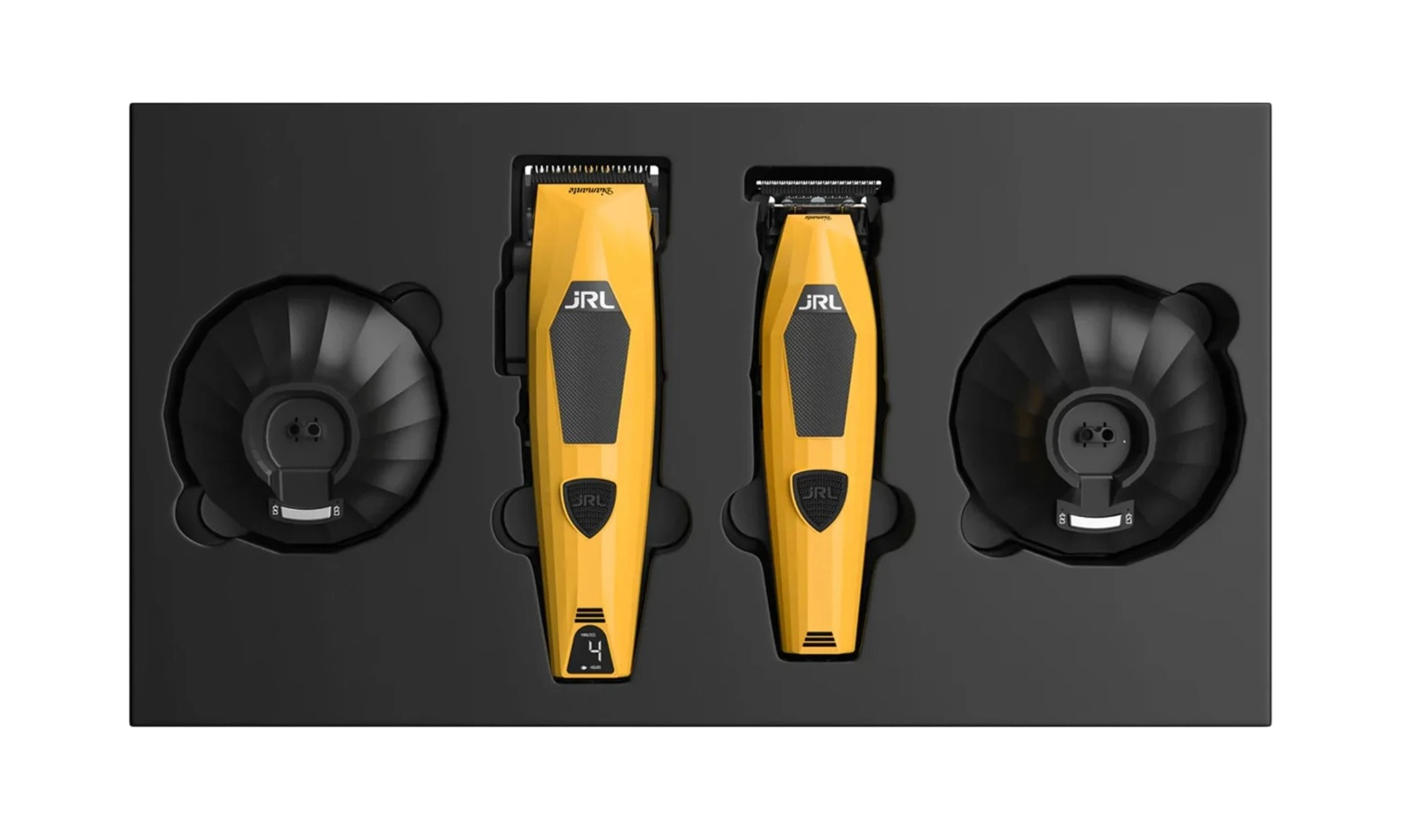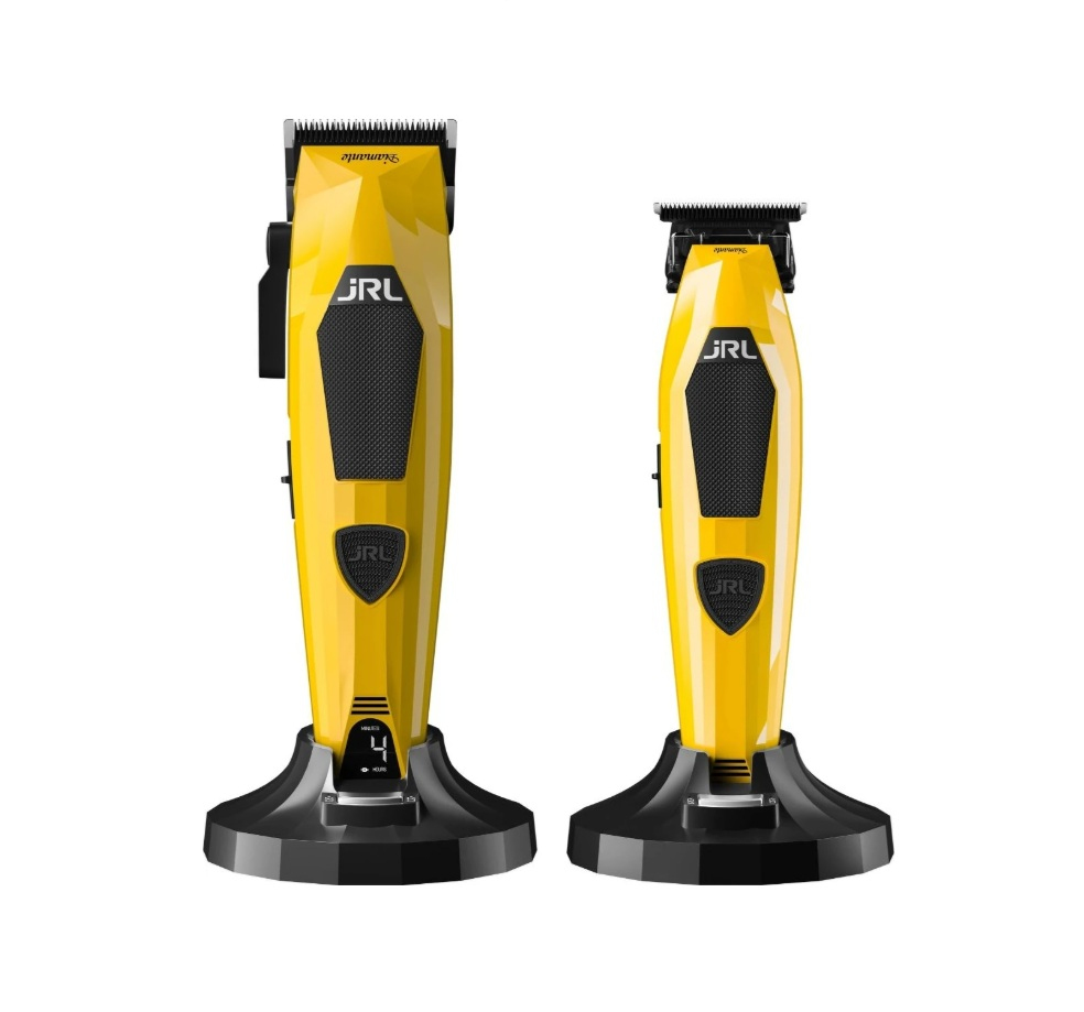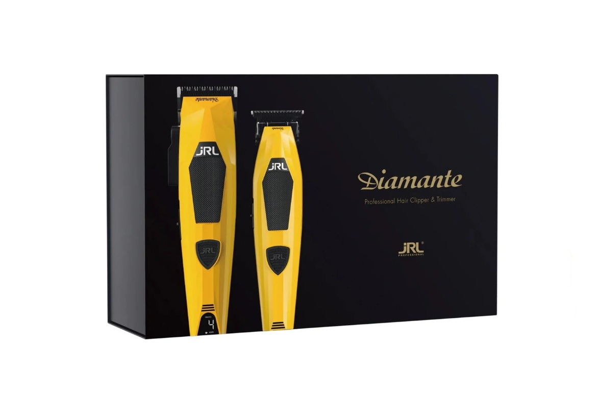 Profesionální sada strojků JRL Diamante v atraktivní žluté barvě nabízí vysoký výkon, přesnost a tichý chod pro plynulé přechody i detailní práci.