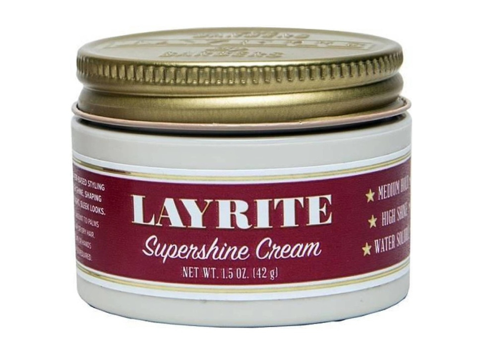 Layrite Supershine (42 g) je krém na vlasy na vodnej báze so strednou fixáciou a vysokým leskom. Ideálna na rovný, uhladený vzhľad s vysokým leskom. Najlepšie funguje na kratších, jemných až stredne hustých vlasoch. Je na vodnej báze – ľahko sa vymýva z vlasov. Obsahuje prírodný lanolín, ktorý vlasom dodáva vysoký lesk a textúru a zároveň ich vyživuje. S vanilkovou vôňou. Vyrobené v USA.