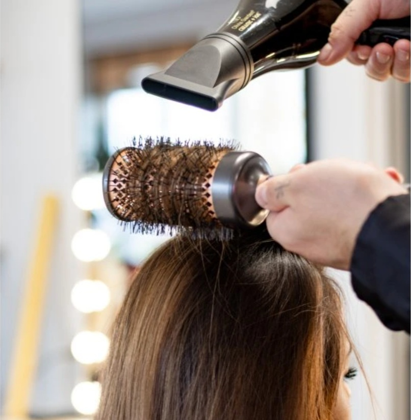 - Používejte při foukání na téměř suché vlasy. Natočte pramen na kartáč, zahřejte proudem vzduchu a vytvarujte podle požadovaného objemu či hladkosti.