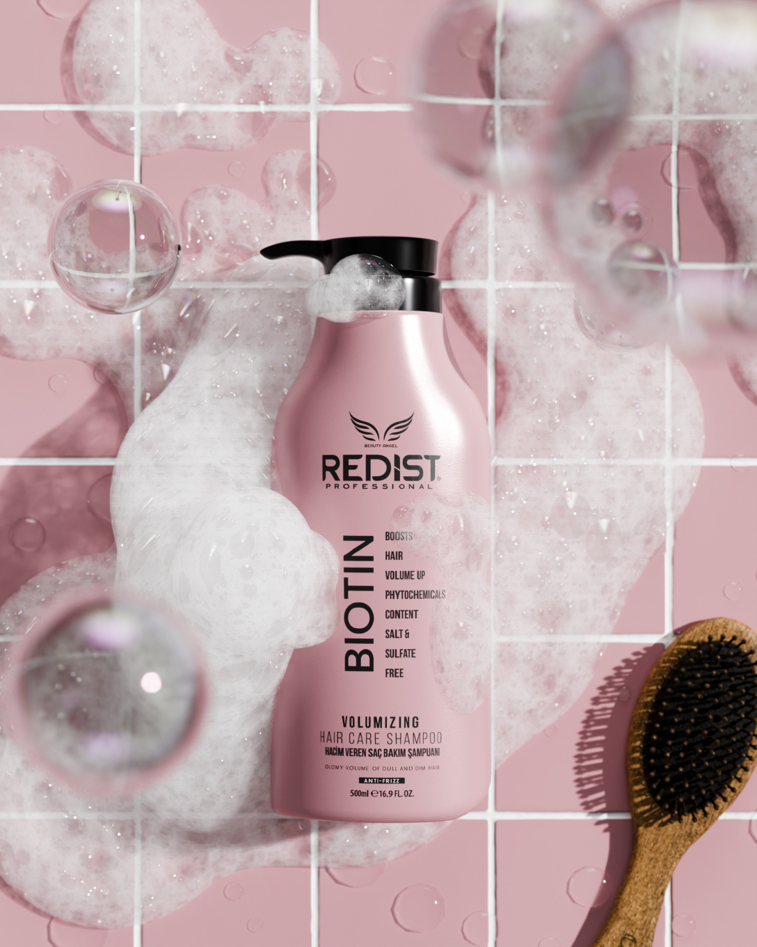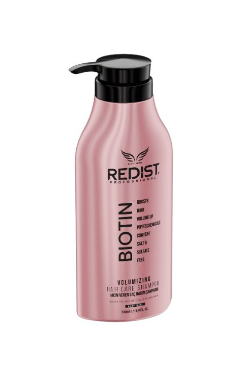 Redist Biotin šampon na objem vlasů (500 ml) je vlasový šampon pro jemné, řídké, splihlé nebo oslabené vlasy, kterým pomáhá dodat plnější vzhled, svěží čistotu, lesk a lepší poddajnost.