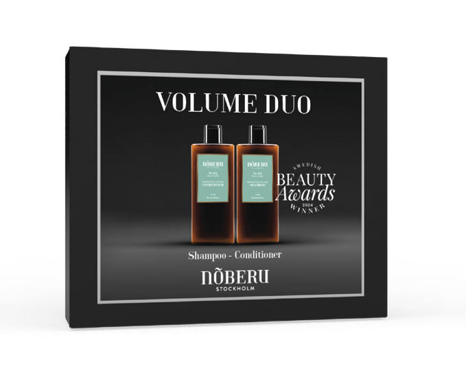 Darčeková sada na vlasy Volume Duo od Noberu na zvýšenie objemu a pružnosti vlasov s prirodzeným leskom. Obsahuje šampón na vlasy a kondicionér.