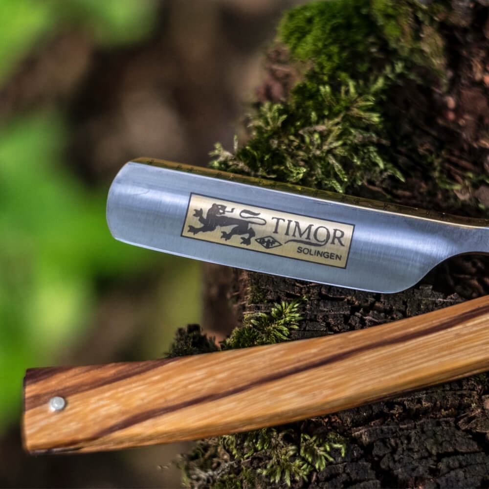 Krásna britva s 6/8 palcovou čepeľou z uhlíkovej ocele. Na čepeli je vypletaný lev a logo Timor v pozlátenom ráme. Rukoväť je vyrobená zo vzácneho dreva Marblewood, ktoré má osobité vzorovanie. Vyrobené ručne v Nemecku za použitia tradičných metód. Dodávané v papierovej krabičke.