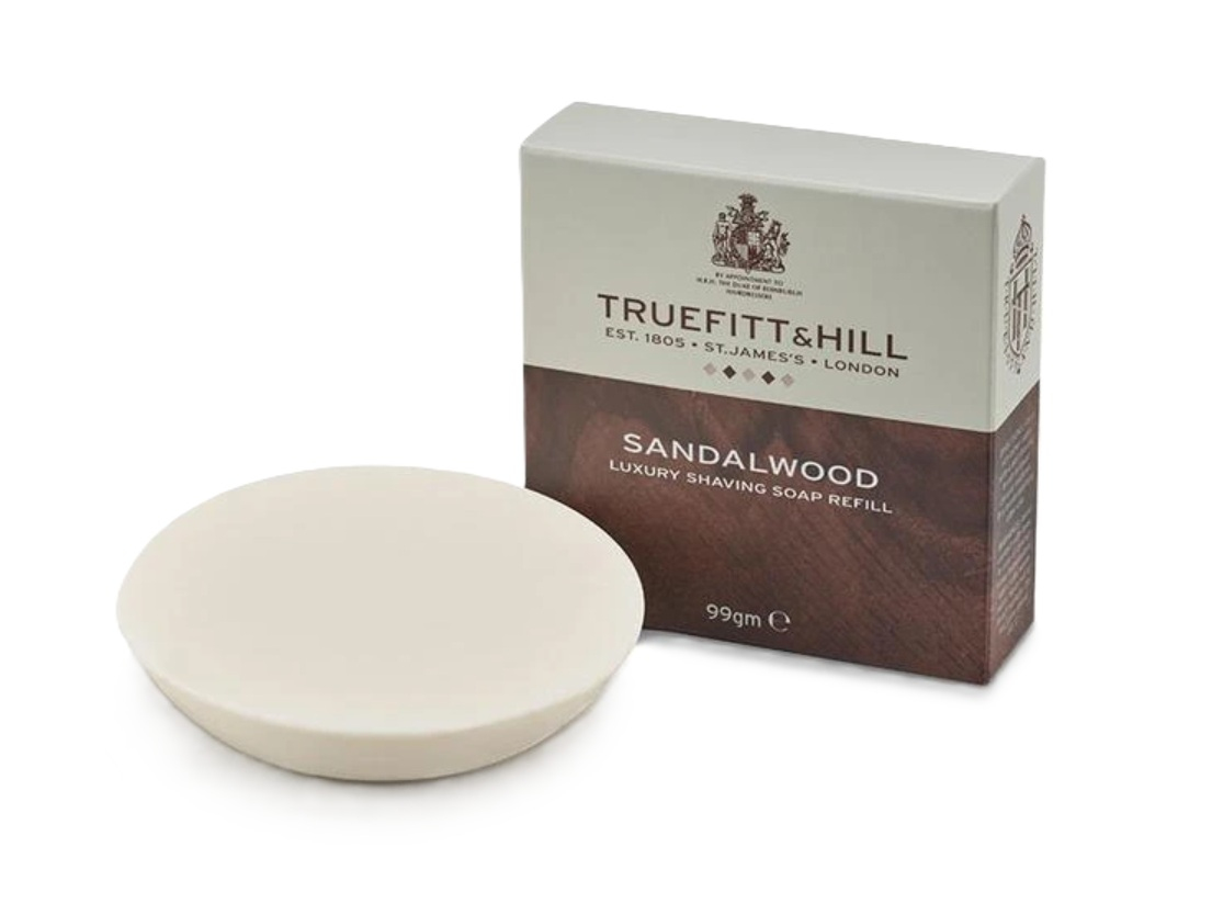 Vůně kombinuje hřejivé santalové dřevo s citronem, cedrem, limetkou, bergamotem a pižmem. Není to těžký, staromódní santal – spíš moderní pojetí, kde dřevité tóny doplňují svěží citrusové akordy. Vůně je příjemná, ale nenápadná, takže nekoliduje s vodou po holení ani parfémem. Mýdlo se hodí i jako náhradní náplň do dřevěné misky Truefitt and Hill. Vyrobeno v Anglii.