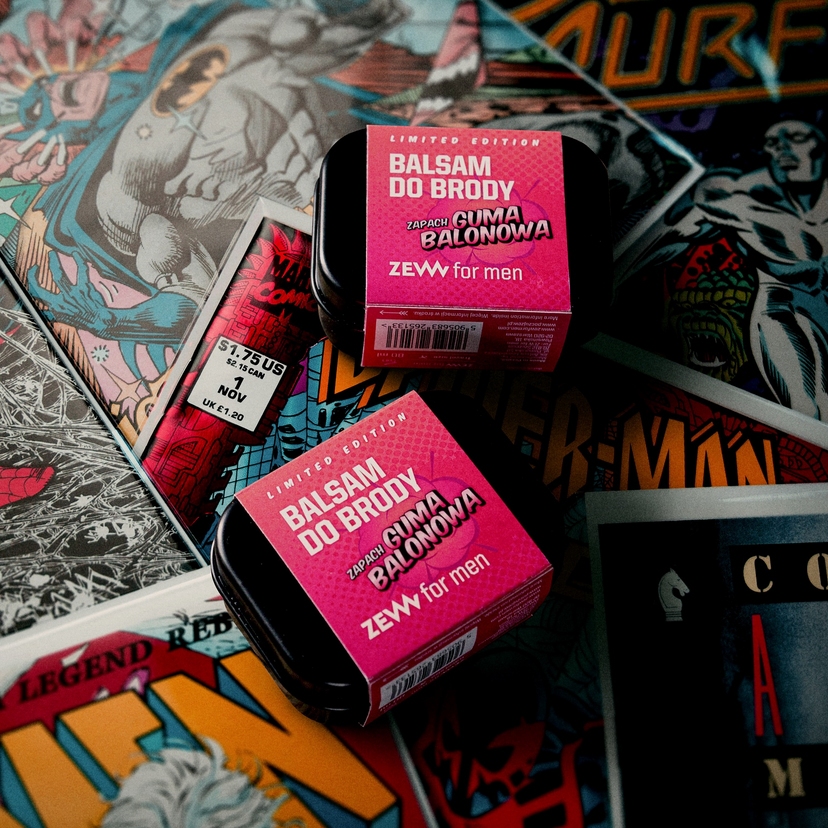 Prírodný balzam na fúzy Zew for men v limitovanej edícii so sladkou vôňou žuvačky.