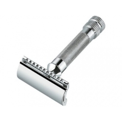 Kvalitný celokovový holiaci strojček Mühle R89 na klasické žiletky. Má plnú lištu, takže je vhodný pre každodenné holenie.